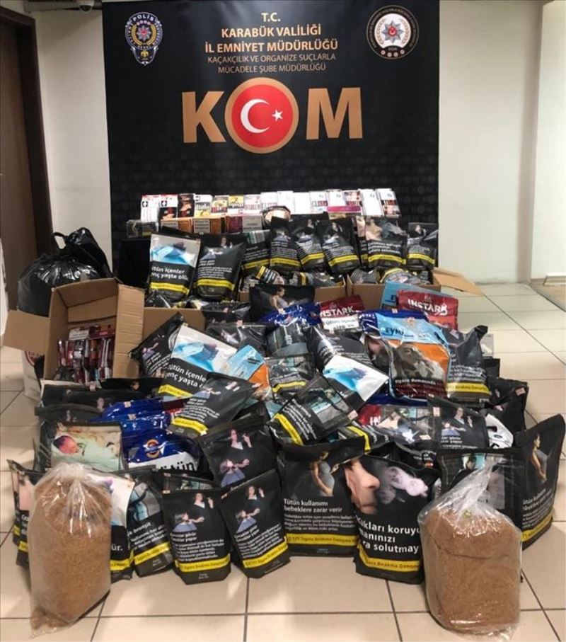 Karabük İstihbarat ve KOM Şube Müdürlüğü görevlilerince kaçak tütün ve tütün mamullerinin satışının önlenmesine yönelik olarak yapılan çalışmalar neticesinde; M.B.H. isimli şahsın işyerinde kaçak olarak tütün sattığı tespit edildi. Ekiplerimizce düzenlenen operasyon neticesinde yakalandı. Şahsa ait işyerinde yapılan aramalarda; 79 bin 800 adet boş makaron, 249 kg kıyılmış tütün, bin adet farklı sigara markaları basılı tütün poşeti, bin 100 adet mükerrer kullanıma hazır TAPDK bandrolü ele geçirildi.