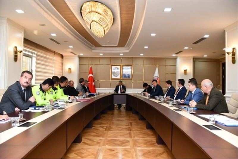Yaklaşan kış mevsiminde, muhtemel yoğun kar yağışı ve don kapsamlı meteorolojik uyarılarda, olası can ve mal kayıplarının önlenmesi ya da en aza indirilebilmesi ve müdahale çalışmalarının hızlı ve etkin yapılabilmesi, vatandaşların güvenli, rahat ve huzurlu bir ortamda yolculuk yapmalarını sağlamak, kar ve buzla mücadele çalışmaları hakkında bilgi vermek, koordineli çalışmayı tesis etmek amacıyla gerçekleştirilen toplantıda, sürücülerden yoğun kar yağışının ve buzlanmanın görüldüğü havalarda olumsuz durumların yaşanmaması için daha dikkatli ve tedbirli araç kullanmaları, araçlarında zincir, çekme halatı, takoz ve kar lastiği bulundurmaları, donanımlı bir şekilde trafiğe çıkmaları ve trafik kurallarına uymaları istendi.
