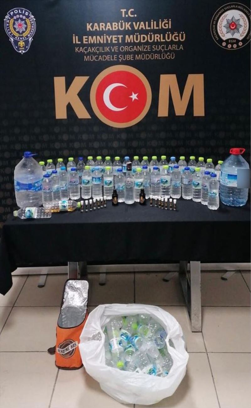 Karabük´te sahte içki üretimi yapan bir kişi polis tarafından yapılan operasyonda yakalanarak gözaltına alındı. Sahsın sahte alkolleri polise yakalanmamak için pet şişelere koyarak su görünümü verdiği iddia edildi.