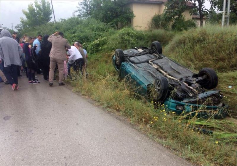 Karabük - Eskipazar karayolu 10. Kilometresinde Yusuf Arslan (40) idaresindeki 16 AEP 77 plakalı otomobil sürücüsünün direksiyon hakimiyetini kaybetmesi sonucu yoldan çıkarak takla attı. Kazada ters dönen otomobilin içindeki sürücü Arslan ile yanında yolcu olarak bulunan, Şaden Arslan (65), Ege Can Arslan (9) ve Ece Nur Arslan (11) yaralandı. Yaralılara yoldan geçmekte olan AK Parti konvoyundaki partililer yardım ederek otomobilden çıkarttı. Yaralılar olay yerine gelen ambulanslarla Karabük Eğitim Araştırma Hastanesine kaldırıldı.