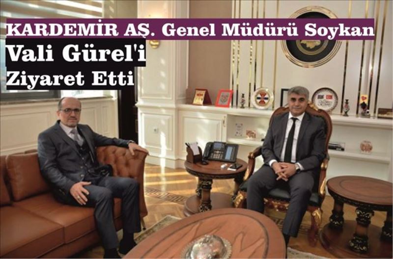 Sohbet ortamında gerçekleşen ziyaretten duyduğu memnuniyeti dile getiren Vali Fuat Gürel, KARDEMİR AŞ. Genel Müdürlüğüne atanmasından dolayı Dr. Hüseyin Soykan´ı tebrik ederek çalışmalarından başarılar diledi.