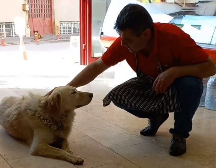 Aralarındaki dostluğun kazadan kurtulmasından sonra başladığını ifade eden Mehmet Aşkar, “Ben sabahları dükkanı erken açıyorum. Her gün gelip kapının önüne oturuyor. İçeri girmiyor. Müşterileri de rahatsız etmiyor. Bir gün müşterimiz aracını karşı otoparka çekti. Paketleri hazırladım, müşteriyi çabuk göndereyim diye telaşlı şekilde merdivenden aşağı koşarak indim. Kaldırımda paçamdan tutarak asıldı. Ben de kızmak için döndüm. Sonra tekrar önüme döndüğümde bir araç fren yaptı. Araba bana çarpacakken beni tuttu. Her gün sabahları geliyor. Yarım kilo et veriyorum. Bir de bayan arkadaş buldu. O da karşıdaki otoparkta duruyor. Ben eti ona veriyorum, o da gidip otoparka bırakıyor. Biraz sohbet ediyoruz. Eti yedikten sonra biraz daha oturuyor sonra gidiyor” diye konuştu.