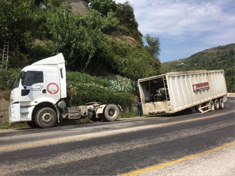 Edinilen bilgiye göre, İnebolu´da Salman Çayı kenarına yapılan çöp aktarma istasyonunda biriken çöpleri merkeze taşımak için yola çıkan 37 BL 942 plakalı tırın dorsesi, İnebolu´da Taşoluk Köyü virajında çekicisinden ayrıldı. Kilidinden çıkan dorse devrilmeden yere düştü. Virajda yaşanan olay nedeniyle yol tek şeride düştü. Jandarma ekipleri, olay yerinde kaza yaşanmaması için güvenlik önlemi aldı.