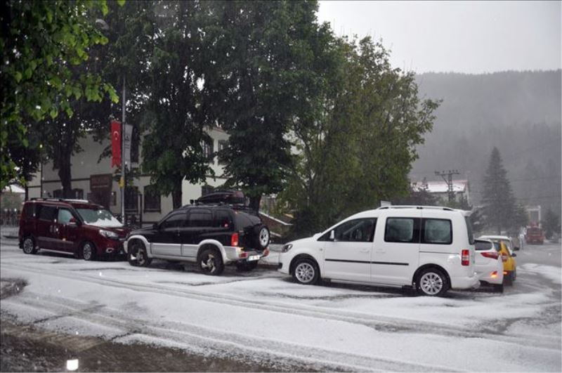 Kastamonu´ya 15 dakika süren dolu yağışı kenti beyaza bürüdü