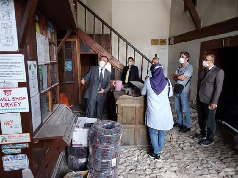 Safranbolu Kaymakamı Mehmet Türköz, Birlik Müdürü Gökhan Kara, İlçe Özel İdare Müdürü Talha Durum, İmar ve Kentsel İyileştirme Müdürü Vildan Turcan ve teknik personellerince Kaymakamlar Gezi Evinin restorasyon çalışmalarını yerind