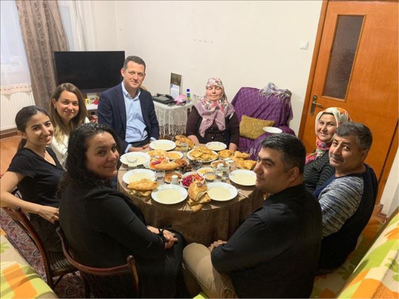 Yakın zamanda eşini kaybeden Nazire Elverir Kaymakam Dr. Fatih Ürkmezer ve Eşi Miray Ürkmezer´in kendilerini ziyaretinden büyük mutluluk duyduklarını belirtti. Ramazan ayının yardımlaşma ve dayanışma ayı olduğunu ifade eden Kaymakam Ürkmezer;” Bu ayda herkes ilk önce, komşularından başlayarak, mahallesinde bulunan ihtiyaç sahibi insanlara yardımda bulunmaya onların sıkıntı ve sorunlarını gidermek için el birliği ve gönül birliği yapmalıdır. Bizler de vatandaşlarımızın her anında yanında olmaya ve onların eksiklerini gidermek için başta Sosyal Yardımlaşma ve Dayanışma Vakfımız olmak üzere tüm kurum ve kuruluşlarımızla çaba ve gayret içinde çalışıyoruz” dedi. Elverir ailesi ve komşuları ile sohbetin ardından Ürkmezer ev sahiplikleri için kendilerine teşekkür etti.