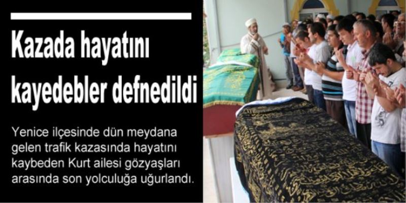 Kazada hayatını kaybeden Kurt ailesi için Yenice İlçesine bağlı Şirinköy Merkez Camisinde öğle namazını müteakip cenaze namazı kılındı. Cenazeye, Yenice Kaymakamı Oğuz Cem Murat, Yenice Belediye Başkanı Zeki Çaylı, Yortan Belde Belediye Başkanı Yılmaz Tiryaki, ölenlerin yakınlarının yanı sıra çok sayıda vatandaş katıldı. Cenazeler daha sonra gözyaşları içerinde Değirmenyanı köyünde toprağa verildi.