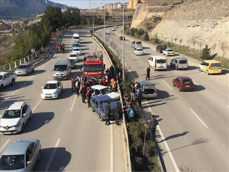 Karabük´te iki otomobilin çarpışması sonucu meydana gelen trafik kazasında 1 kişi yaralandı. Karşı şeritte kazayı izleyen sürücü de kaza yaparak, önündeki otomobile çarptı.