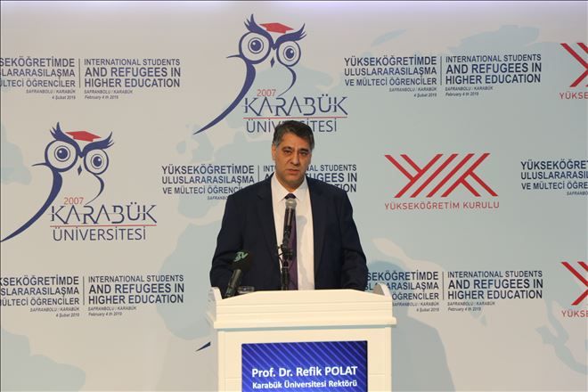 YÖK tarafından Cumhurbaşkanlığı himayesinde yürütülen 'Orta Doğu´da Akademik Mirası Koruma' projesi kapsamında Karabük Üniversitesinde (KBÜ) 'Yükseköğretimde Uluslararasılaşma ve Mülteci Öğrenciler' konulu forum düzenlendi. Safranbolu Fethi Toker Güzel Sanatlar Fakültesi konferans salonunda yapılan toplantının açılışında konuşan KBÜ Rektörü Prof. Dr. Refik Polat, “Cumhurbaşkanımız Recep Tayyip Erdoğan´ın başbakanlığı döneminde kurulan ilk 10 üniversiteden biri olan Karabük Üniversitesinde 83 ülkeden 6 bin 619 uluslararası öğrenciyle birlikte toplamda 53 bine yakın öğrencimizi lisans, yüksek lisans ve doktora programlarıyla geleceğe hazırlıyoruz” dedi.