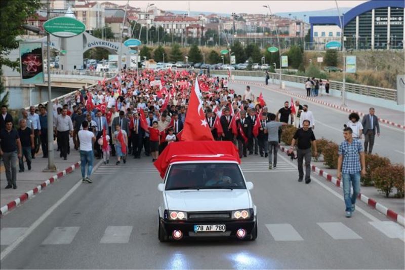 Etkinlik sela sesleri eşliğinde kalabalık bir kortej yürüyüşü ile başladı. Kampüs girişinden kampüs camisine kadar devam eden yürüyüş sonrasında cemaat ile akşam namazı kılındı. Sosyal Yaşam Merkezi alanındaki program şehitler anısına saygı duruşunda bulunulması, İstiklal Marşı´nın okunması ve KBÜ Camii İmam Hatibi Mehmet Akçınar´ın Kur´an-ı Kerim tilaveti ile devam etti.