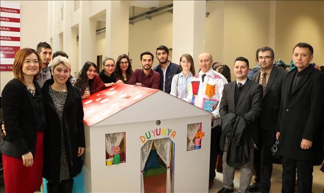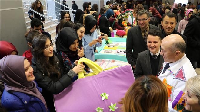 Sağlık Yüksekokulu Çocuk Gelişimi bölümü öğrencileri, ‘Bir bireyde temel olarak beş duyu vardır. Bu duyular bireyin dış ortamla ilişkilerini düzenler. Tad ve koku alma, işitme, dokunma, görme duyusu ile birey bebeklik döneminde tanışır ve bu onun geleceğini şekillendirir´ durumlarına yönelik çeşitli projeler yaparak bireyin doğuştan beş duyu organının sağlıklı gelişimi için çeşitli ürünler tasarladılar. Tasarladıkları ürünler sergiyi gezenler tarafından büyük ilgi gördü.