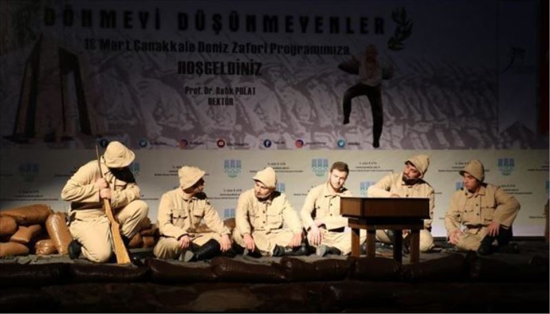 Mini konserin sonrasında ise 81 ilden getirilen vatan toprağı, Karabük Üniversitesi Rektörü Prof. Dr. Refik Polat´a teslim edildi. Devamında Karabük Üniversitesi mezunu Cihan Aslan´ın yönetmenliğini yaptığı “Dönmeyi Düşünmeyenler” adlı tiyatro oyunu sahnelendi. Çanakkale savaşı sırasında yaşananların etkili bir şekilde anlatıldığı oyun sırasında duygusal anlar yaşandı. Kullanılan dekor ve kostümlerin de dönemi bire bir yansıttığı tiyatro oyunu katılımcılar tarafından oldukça beğenildi.
