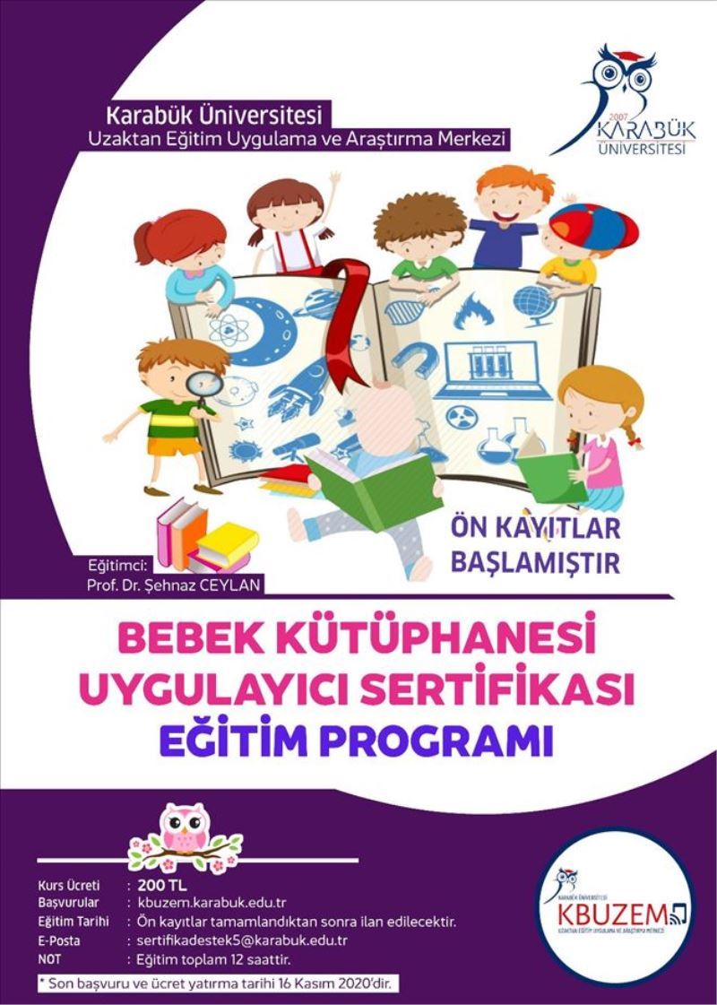 Eğitime katılmak isteyenler, “https://kbuzem.karabuk.edu.tr” internet adresindeki E-Sertifika bölümünden ön başvuru formunu doldurarak başvuru yapabilecek. Eğitimde başarılı olan katılımcılar bebek kütüphanesinin yaygınlaşmasında rol oynayacak ve katılımcılara Karabük Üniversitesi onaylı e-sertifika verilecek.