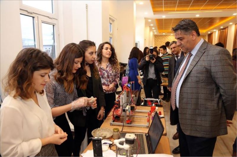 Açılışını Karabük Üniversitesi Rektörü Prof. Dr. Refik Polat´ın yaptığı sergi hakkında bilgi veren Teknoloji Fakültesi Endüstriyel Tasarım Bölümü Dr. Öğretim Üyesi Hatice Evlen, “Bizim bölümümüzdeki öğrencilerin 3 Boyutlu Yazıcı dersinde ve tez olarak yaptıkları 3 boyutlu yazıcılarla, kendi tasarımları olan yazıcılarla, kendi ürettikleri parçaları sergiliyoruz. Sergimizde FDM tipi plastik malzemeyi elde etmek koşuluyla yazdırdığımız üç boyutlu yazıcılarımız var. Doku ve yapay organ basımında kullanılan biyoyazıcılarımız var. Bunlarla ilgili ayrıca patent çalışmalarımızı başlattık. Seramik yazıcılar, Kartezyen kol robot tipi yazıcılarımız var. Bunlar da sanayi ve endüstride oldukça yaygın olarak kullanılan yazıcılar.” diye konuştu.