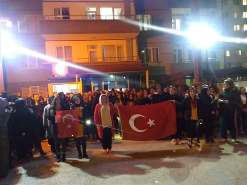 Yürüyüşün ardından konuşan öğrenciler, “Bizler, her ne olursa olsun her zaman devletimizin ve milletimizin yanındayız. Bizlere ümit bağlamış bu ülkenin gençliği olarak yapılan saldırıyı kınıyor ve şehadet şerbeti içmiş olan şanlı Mehmetçiğimizin ailelerine ve sevenlerine sabır diliyoruz. Kimse unutmamalıdır ki biz gençler hemen şimdi şehitlerimizin intikamı uğruna bütün kanımızı buraya boşaltmaya hazırız” ifadelerini kullandı.