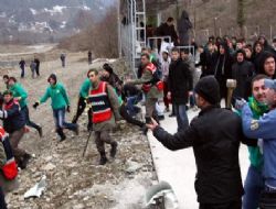 koltukları rakip taraftarlara fırlattı. bu sırada olayları yumuşatmaya çalışan jandarma ekipleri iki tarafın arasında kaldı.