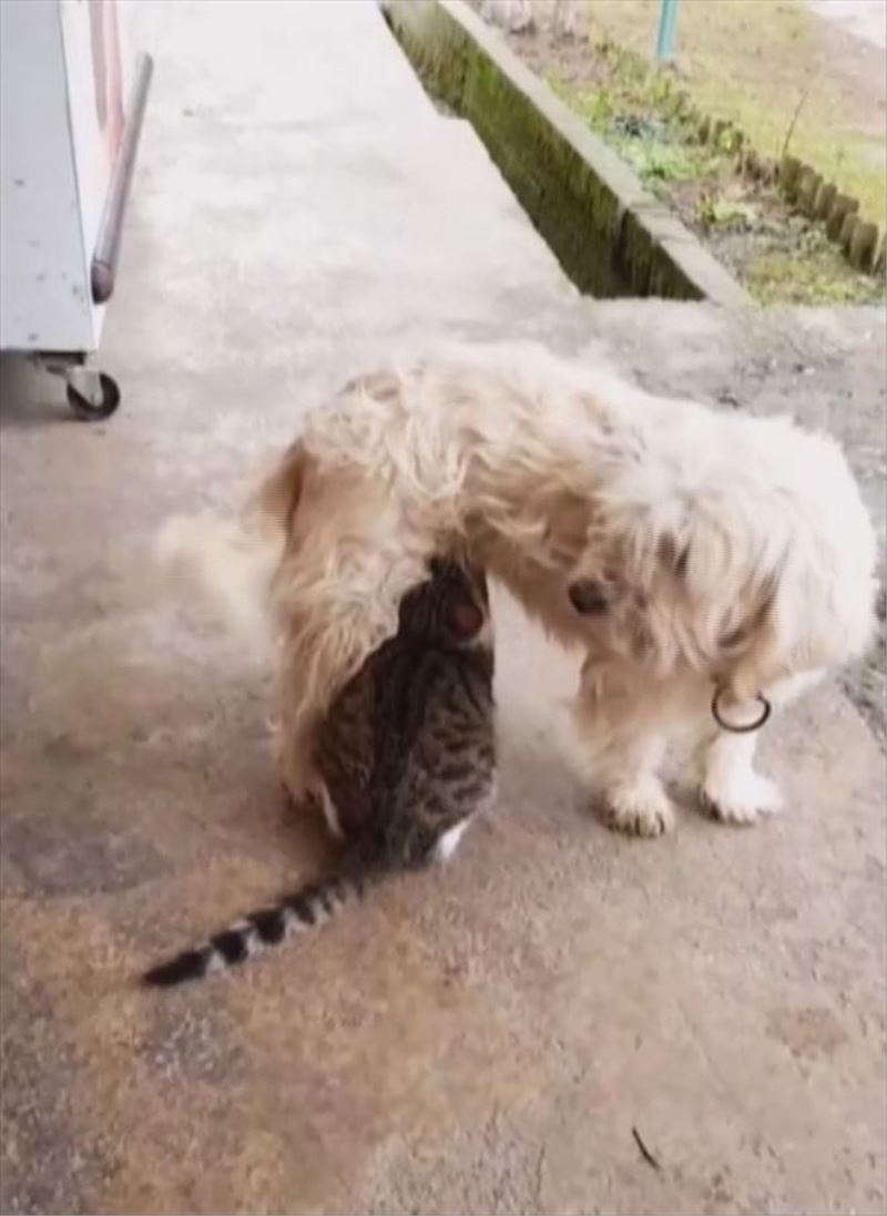 Safranbolu ilçesi Konarı köyünde Tarihi Değirmen işletmesinin sahibi Batuhan Alptekin, annesi olmayan yavru kediyi alarak bakmaya başladı. 'Dost' adını verdiği kedinin doğum yapan köpeği 'Pamuk'tan süt emdiğini gören Alptekin, olayı cep telefonuyla kayda aldı. Kedi ve köpeklerinin birbirleriyle oynayarak vakit geçirmelerini de cep telefonu ile görüntüleyen Alptekin, işletmede kimsesiz kedi ve köpeklere de baktıklarını söyledi. 'Dost' adını verdiği kediyi annesinin terk ettiğini anlatan Alptekin, 'Bizim köpeklerimiz de var. Köpeğimiz ´Dost´ doğurmuştu zaten. Kendi yavrularını emzirirken kediler de onu emmeye başladı. Onlarla oynamaya falan başladı. Süt annesi oldu onun' dedi.