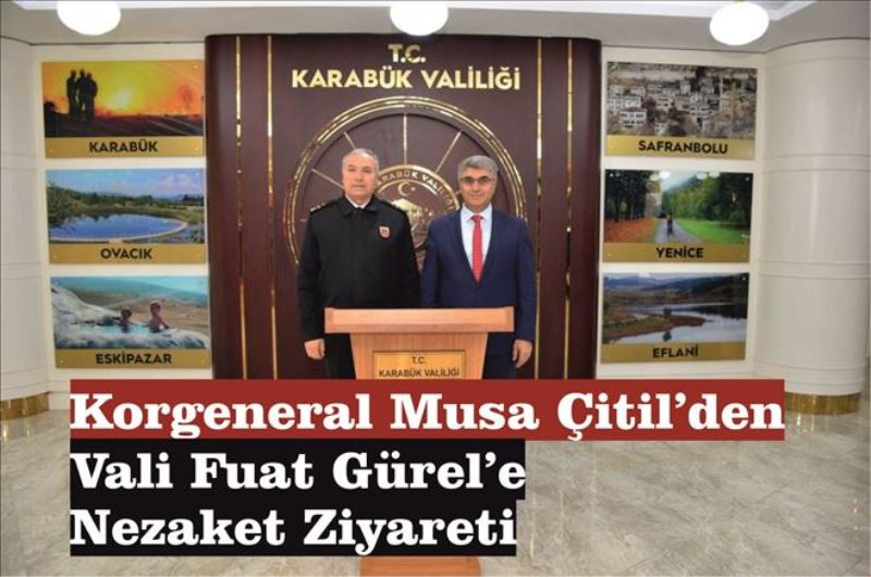 125. Jandarma Eğitim Alay Komutanlığında yapılacak olan 27. Dönem Asayiş Kursu mezuniyet törenine katılmak üzere Karabük´e gelen Jandarma Genel Komutan Yardımcısı Korgeneral Musa Çitil, Vali Fuat Gürel´e nezaket ziyaretinde bulundu.
