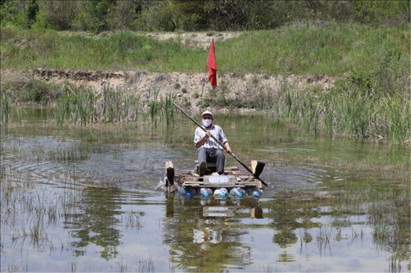 Sarıahmetli köyünde yaşayan 65 yaşındaki Recep Özen, yaklaşık bir yıl önce evde kullandığı su bidonlarından kendisine sal yaptı. Korona virüs salgını öncesinde her gün evinin karşısından geçen Araç Çayı´ndaki gölette yaptığı sala binerek vakit geçiren Özen, İçişleri Bakanlığı tarafından Covid-19 tedbirleri kapsamında alınan 65 yaş üstü ve kronik rahatsızlığı bulunanların sokağa çıkma kısıtlaması nedeniyle artık haftada bir kez belirli saatlerde sala binebiliyor. Özen, sokağa çıkma serbestliğinin olduğu pazar günleri yürüme mesafesindeki Araç Çayı´na giderek, burada oluşan gölette yaptığı sala binip zaman geçiriyor.
