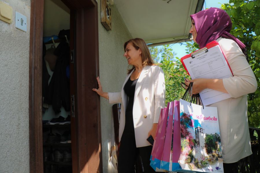 Emek Mahallesi'nde Derman Ekibi ile birlikte ev ziyaretleri gerçekleştiren Safranbolu Belediye Başkanı Elif Köse, ziyaretlerinde vatandaşların talep ve şikayetlerini dinlerken Türk Bayrağı ve belediyenin kendi üretimi olan kurabiyelerden hediye etti.