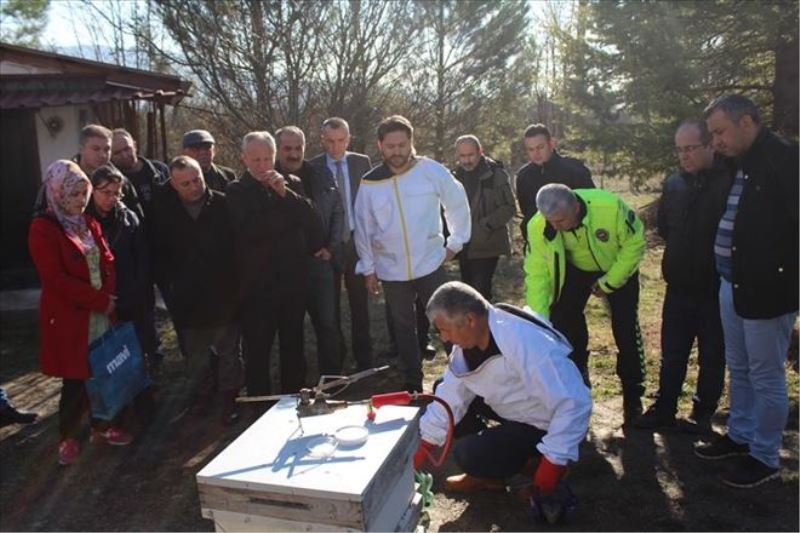 İl Tarım ve Orman Müdürlüğü ile Karabük Halk Eğitim Merkezi işbirliği kapsamında düzenlenen 72 saat süreli arıcılık kursunda kursiyerlere uygulamalı eğitim verildi.