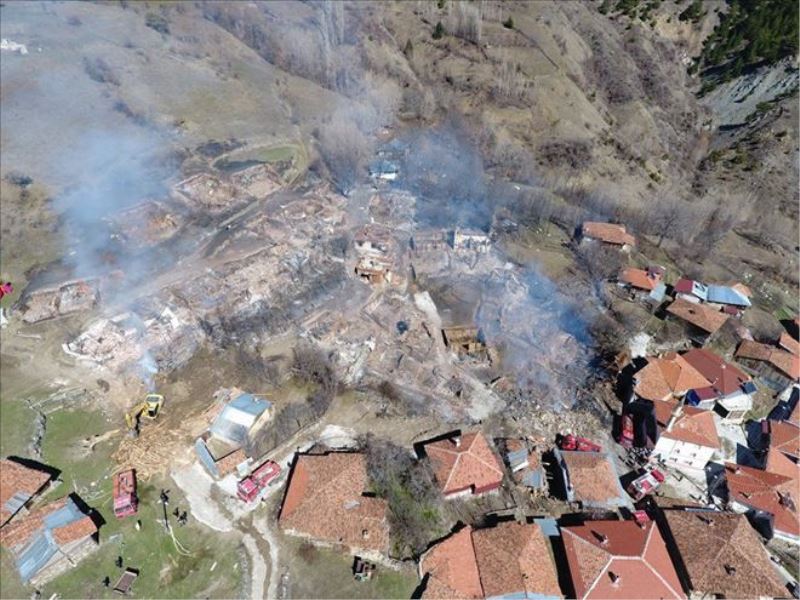 Sobadan çıkan kıvılcımla başlayan ve neredeyse köyün yarısını saran yangının büyüklüğü günün ilk ışıklarıyla ortaya çıktı. Çankırı´nın Ilgaz ilçesine bağlı Serçeler köyü drone ile havadan görüntülendi.