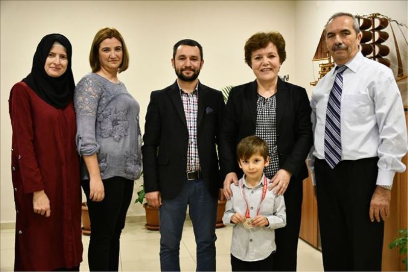 Ziyarete antrenörü Ahmet Karcı ile birlikte gelen 7 yaş açık kategorisinde il 2´ncisi olan Musab Kayabaşı sevincini Karabük Belediye Başkan Yardımcısı Seher Berker´le paylaştı.