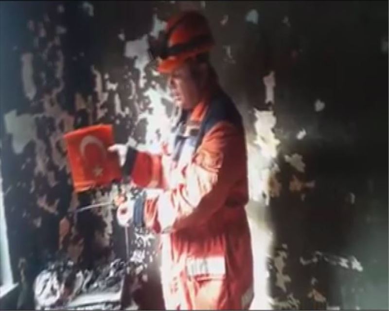 İtfaiyeciler kendileri kaydettikleri görüntülerde Türk bayrağını üç kez öperek alınlarına götürdüler.