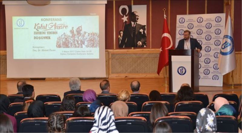 Bartın Üniversitesi Edebiyat Fakültesi tarafından “Kut´ül Ammare Zaferini Yeniden Düşünmek” adlı bir konferans gerçekleştirildi. Etkinlikte konuşan Bartın Üniversitesi Rektörü Prof. Dr. Orhan Uzun, “Ecdadımız bin yıllar boyunca büyük ve kutlu bir yürüyüşün neferleri oldu. Tarihler 29 Nisan 1916´yı gösterdiğinde de aynı büyüklük, Bağdat´ın 170 kilometre güneyinde bulunan Kût´ül Ammare kasabasında İngiliz Ordusu´nun 5 generali, 277 subay ve 13 bin 300 erinin Türk Ordusu´na teslim olmasıyla bir kez daha vasıl oldu. Bu büyük zaferin 101´inci yılında bizlere her zaman ilham kaynağı olan kahramanlarımızı rahmet ve şükran ile anıyorum” dedi.