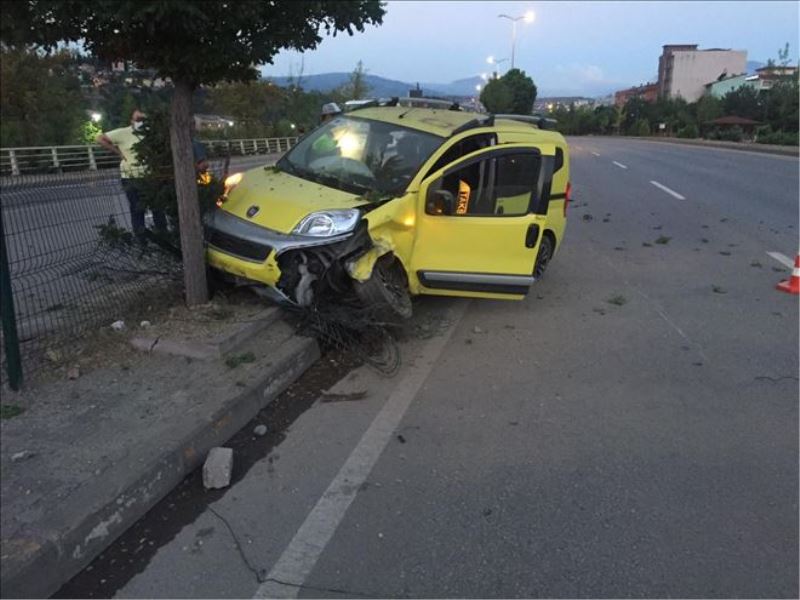 Edinilen bilgiye göre kaza, Karabük-Safranbolu Karayolunda meydana geldi. F.B.Ö. (19) yönetimindeki 78 T 0183 plakalı ticari taksi Şehit Ataşe Reşat Bulvarı´nda seyir halinde iken lastiklerinin patlaması sonucu önce refüje sonra karşı şeride geçerek ağaca çarptı. Kazada sürücü ile yolcu Ö.T. (22) hafif şekilde yaralandı. İhbar üzerine olay yerine polis ve 112 ekipleri sevk edildi. Sağlık ekiplerinin ilk müdahalesinin ardından yaralılar Karabük Eğitim ve Araştırma Hastanesine kaldırıldı.