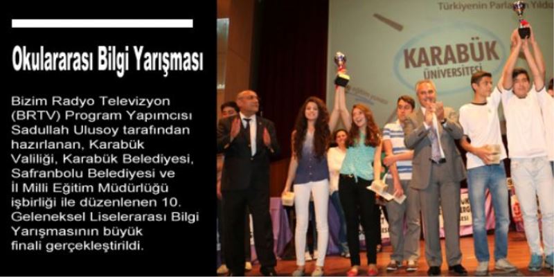 Geleneksel Liselerarası Bilgi Yarışmasının finaline kalan okullar; Meslek ve Anadolu Grubu olarak iki gurupta yarıştılar. Meslek gurubunda; Safranbolu Kız Teknik Melek Lisesi, Eflani IMKB Çok Programlı Lisesi, Karabük Teknik Endüstri Meslek Lisesi yer alırken; Anadolu Grubunda ise Karabük Mehmet Vergili Fen Lisesi, Karabük Cumhuriyet Anadolu Lisesi ve Safranbolu Anadolu Öğretmen Lisesi yer aldı. Yarışmada öğrencilere matematik, biyoloji, fizik, kimya, Türkçe, tarih ve genel kültür olmak üzere toplam yirmi soru soruldu. Yarışmanın ilk on sorusundan sonra verilen arada BRTV Yönetim Kurulu Başkan Yardımcısı Osman Çetinkaya 10. Geleneksel Liselerarası Bilgi Yarışmasına sponsor olan firmalara plaket takdiminde bulundu. Yaşanan kıyasıya mücadelenin ardından 3. olan Safranbolu Kız Teknik Meslek Lisesi ve Karabük Cumhuriyet Anadolu Lisesi öğrencilerine ödüllerini Eflani Belediye Başkanı İbrahim Ertuğrul takdim ederken aynı zamanda Ertuğrul, Meslek Lisesi grubunda 1. olan Eflani IMKB Çok Programlı Lisesi öğrencilerine de bilgisayar hediye etti. 2.’lik ödülünü alan, Safranbolu Anadolu Öğretmen Lisesi ve Eflani IMKB Çok Programlı Lisesi’ne ödüllerini Safranbolu Belediye Başkanı Dr. Necdet Aksoy takdim ederken, 1.’lik ödülünü alan Karabük Mehmet Vergili Fen Lisesi ve Karabük Teknik Endüstri Meslek Lisesi’ne ise ödülünü Rektör Prof. Dr. Burhanettin Uysal takdim etti.