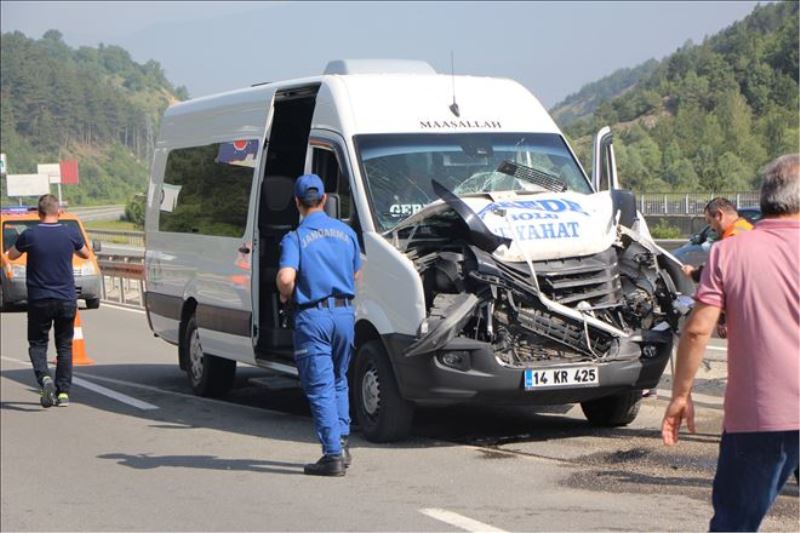 Edinilen bilgiye göre, Bolu´nun Gerede ve Yeniçağa ilçeleri´nde çalışan devlet memurlarını taşıdığı öğrenilen Hüseyin Bölükbaş yönetimindeki 14 KR 425 plakalı minibüs, arıza nedeniyle Çaydurt Mevkii´nde sol şeritte duran Orhan Sarmaz idaresindeki greydere çarptı. Kazada, minibüs sürücüsü Hüseyin Bölükbaş yara almadan kurtulurken, araçta bulunan Hatice Nur Kayıkçı, Sercan Şengüleç, Oğuz Yılmaz, Mehmet Sezgin, Sena Güncan, Murat Gülen, Canan Arslan, Özlem Kağan, Nurcan Kutlu Habek ve Merve Okçu hafif şekilde yaralandı.
