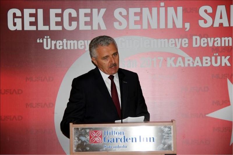 MÜSİAD Karabük Şube Başkanı Ahmet Nur, ´Gelecek Senin Sahip Çık ´ üretmeye ve büyümeye devam ediyoruz temalı çalışmalarının bu yıl ikincisini düzenlediklerini söyleyerek, “ Ülkemizin tarihinde yaşamış olduğu çok önemli zaman dilimleri vardır, mesela 1071 Malazgirt Zaferi, 1300 Osmanlı Devletinin kuruluşu, 1453 İstanbul´un Fethi, 1908 Osmanlıyı yok etmek isteyen hainlerin harekete geçişi gibi içinde bulunduğumuz zaman diliminde de İslam´ın son kalesi olan Türkiye Cumhuriyetini yok etmek isteyen içimizdeki hainlerle birlikte dost sandığımız ülkelerin topyekun saldırısıyla karşı karşıyayız. Zamanın Milli mücadelesini vermekteyiz. Bu mücadelenin dönüm tarihlerinden birisi de 16 Nisan´dır. 16 Nisan´da bu büyük millet kendi geleceğini kendisi tayin edecektir. Sayın Cumhurbaşkanımız Recep Tayyip Erdoğan´ın önderliğinde bölgesinde lider dünyada güçlü bir devlet olarak tarih sahnesindeki yerini alacaktır. MÜSİAD olarak bizlerde gece gündüz çalışarak desteğimizi vermeye devam etmekteyiz” diye kaydetti.