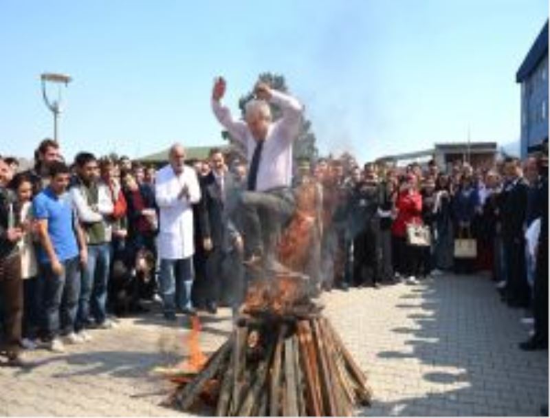 Spor salonu'ndaki gösterilerin ardından Teknoloji Fakültesi önünde Vali Yardımcısı Abidin Ünsal, Garnizon Komutanı Jandarma Albay Ufuk Nayır, Karabük Belediye Başkan Yardımcısı Fatma Danışman, Rektör Prof. Dr. Burhanettin Uysal ve İl Emniyet Müdürü İlhan Acaröz hep birlikte Türklerin Ergenekon'dan çıkışını temsil eden örs üzerine demir dövdüler ve Nevruz Ateşi'ni yakarak üzerinden atladılar.