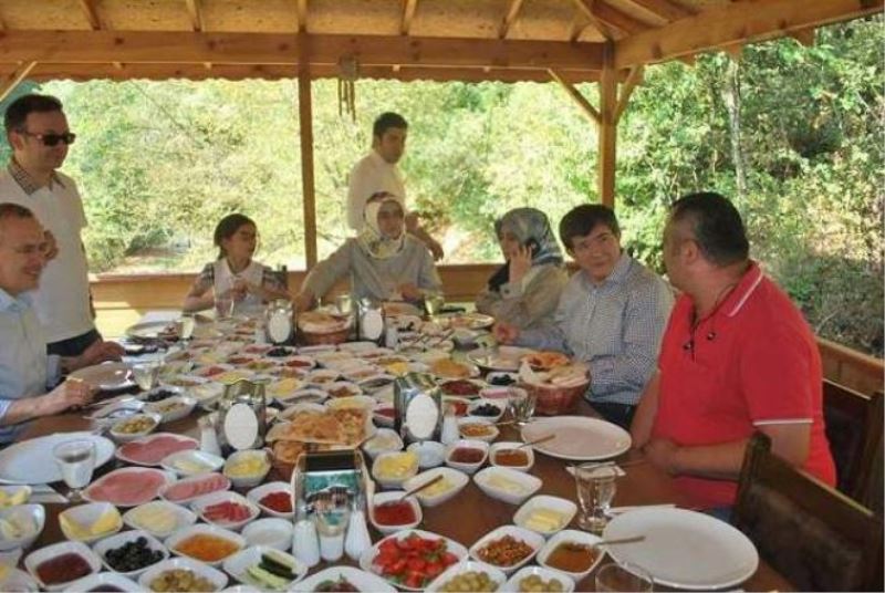 Yenice Vadi Restaurat sahibi Ercan Tom, resimdeki kahvaltı sofrasının 4 masanın birleşmesinden oluştuğunu ve her masada normal vatandaşa verilen 30 çeşit köy ürünün olduğunu söyledi. Tom, daha önce kendilere kalabalık bir heyetin kahvaltı için geleceği ve kim olduğu konusunda bilgi verilmediğini de anlatarak, “ Daha önceden bize kalabalık bir heyet geleceği söylendi ve kimin geleceğini bilmiyorduk. Biz de 30 kişiye göre kahvaltı hazırladık. Masa duble masaydı. Her masa için 30-35 çeşit ürün koyuyoruz. Pazartesi sabahı kanyona gelen misafirin Dışişleri Bakanı Ahmet Davutoğlu’nun olduğunu gördük. Yanında ailesi olduğundan biz de 30 kişiye göre hazırlanan 4 masayı birleştirince ortaya böyle bir manzara çıktı. Bu durum karşısında Sayın Bakanımız hatta bize kızarak bunların israf olmaması için kaldırılmasını istedi. Biz de hemen kaldırdık. Normalde daha önceden bastırdığımız afişlerde de ürün çeşitlerimiz var. Burada 30 çeşit kahvaltı olduğu zaten yazıyor. Bu Bakana karşı yapılmış özel bir şey değil, normal vatandaşa da aynısını yapıyoruz. Biz bunu o güne özelde yapmadık. Biz hatta Bakan geleceğini de bilmiyorduk, sadece değerli bir ismin geleceği söylendi. Buraya Maliye Bakanı Mehmet Şimşek ve Başbakan Yardımcısı Ali Babacan bile buraya iki şer kez geldi. Biz bunları bile deşifre yapmadık. İnsanlar buraya dinlenmeye tatil yapmaya geldi. Normal kahvaltıda 30 çeşittir. Hafta sonları bu sayı 35’e kadar çıkıyor. Zaten resimde görüldüğü gibi bir masada 30-35 çeşit var ve 4 tane masanın birleşmesinde dolayı o kadar kalabalık gözüküyor. Normal vatandaşlarımızın dahi buraya geldiğinde aynı hizmeti görüyor. Bu bizim hizmetimiz. Bakana özel bir şey yapılamadı. İlgi illaki olacak ama serpme köy kahvaltısı ile bu konunun başka yerlere çekilmesi bizi üzüyor. Karabük’te 30 liraya 180 çeşit kahvaltı veriliyor. Hiç mi buralar görünmüyor. Bizim burası ufak bir yer diye mi buraya yakıştırılamıyor, yoksa başka bir şey mi yapılmak isteniyor” diye tepkisini ortaya koydu.
