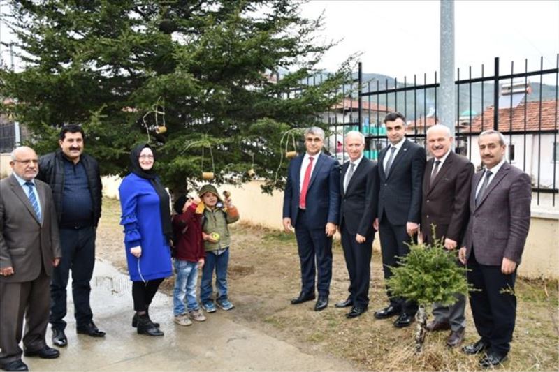 Karabük Valisi Fuat Gürel, Cumayanı Ortaokuluna gerçekleştirdiği ziyarette 2-B sınıf öğretmeni Nurcan Güven Sancı ve öğrencileri tarafından soğukta yem bulmakta zorlanan kuşlar için geri dönüşüm malzemelerinden hazırladıkları kuş yemliklerini okul bahçesinde bulunan ağaçlara asarak “Kuşlara Bir Damla Umut” oldu.