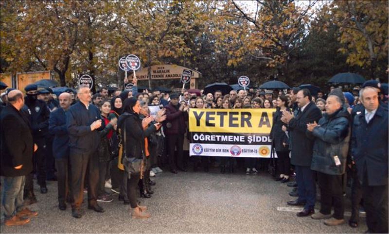 Eğitim Bir-Sen, Türk Eğitim-Sen, Eğitim-Sen ve Eğitim-İş´in Kastamonu Şube Başkanları ve sendika üyeleri, okul önünde yağmur altında öğretmene karşı yapılan şiddete tepki gösterdi. 10 Aralık Mesleki ve Teknik Anadolu Lisesi önünde toplanan kalabalık grup adına ortak basın bildirisini okuyan Eğitim-İş Kastamonu Şube Başkanı Ahmet Tevfik Bal, “10 Aralık Mesleki ve Teknik Anadolu Lisesinde görev yapmakta olan bir öğretmen arkadaşımız, Pazartesi günü okul içinde bir öğrencinin fiziki saldırısına uğrayarak darp edildi. Çevrede bulunan öğretmen arkadaşların ve öğrencilerin müdahale etmelerine rağmen saldırganın elinden zorlukla kurtarıldı. Güzide bir okulumuzda meydana gelen bu vahim olay hepimizi derinden üzmüş ve sarsmıştır. Okulumuzda görev yapmakta olan öğretmen arkadaşlarımız yaşanan saldırı nedeniyle büyük bir moral bozukluğu içerisindedirler. Bizler, eğitim ve bilim iş kolunda örgütlü bulunan sendikaların Kastamonu şubeleri olarak bu vahim olay karşısında dayanışma bilinci ve sorumluluğu içinde okulumuzu ziyaret ederek, geçmiş olsun dileklerimizi ilettik ve her zaman yanlarında olacağımızı belirttik. Bu türden vahim olayların bir daha yaşanmaması için el birliğiyle çalışacağımızı bir kez daha vurgulamak istiyoruz” dedi.