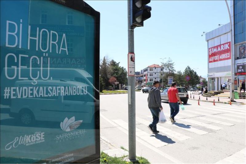 Korona virüsü nedeniyle her geçen gün ölüm sayılarının artmasının ardından tedbirler alınırken, sık sık da uyarılar yapılmaya devam ediyor. Safranbolu Belediyesi tarafından tarihi kentin farklı noktalarına yerleştirilen billboardlarda ‘Evde dur abisinin´, ‘Bi hora geçü´, ‘Düzelü Bee´gibi kente has yöresel şivelerin yazılı olduğu afişlerle vatandaşlara ‘Evde kal´ uyarısı yapılıyor.