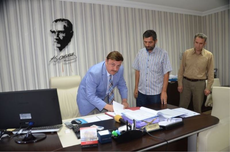 Açıklamanın ardından Genel Sekreter Eski ve müteahhit firma yetkilisi ile birlikte sözleşme imzalandı.