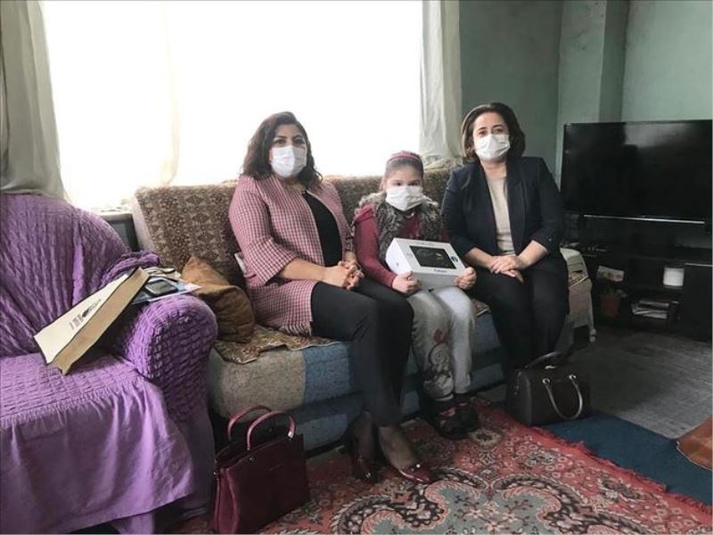 Koronavirüs Salgını nedeniyle EBA üzerinden çevrimiçi olarak gerçekleştirilen derslerini hiç aksatmayarak takip eden ve okuma yazmayı öğrenen Nisa Nur´un sevincine ortak olan Özlem Aras Gürel, tablet, kırtasiye malzemesi ve çeşitli hediyeler vererek tebrik etti.