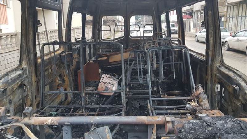 Yanan minibüsten geriye demir yığını kalırken, Polis yangının kundaklama mı yada arızadan kaynaklı çıkıp çıkmadığını noktasında geniş çaplı tahkikat başlattı.