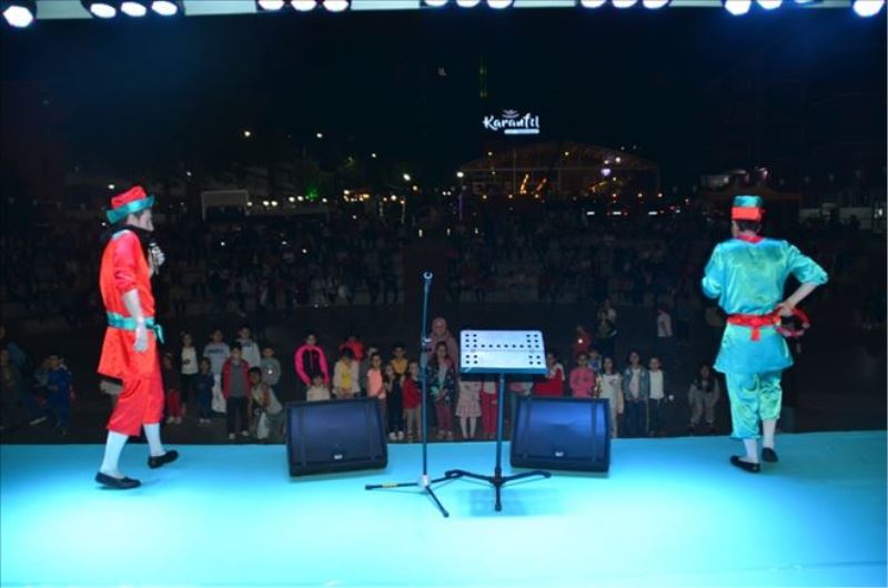 Misak-ı Milli Demokrasi Meydanında saat 21.00´da başlayan etkinlikler kapsamında ilk program çocuklar için Karagöz-Hacivat gölge oyunu ilke başladı.