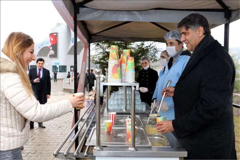 Karabük Üniversitesi (KBÜ)´nde 2016 – 2017 Akademik Yılı Bahar Dönemi´nin ilk ders gününde Rektör Prof. Dr. Refik Polat tarafından öğrencilere sıcak çorba ikram edildi.