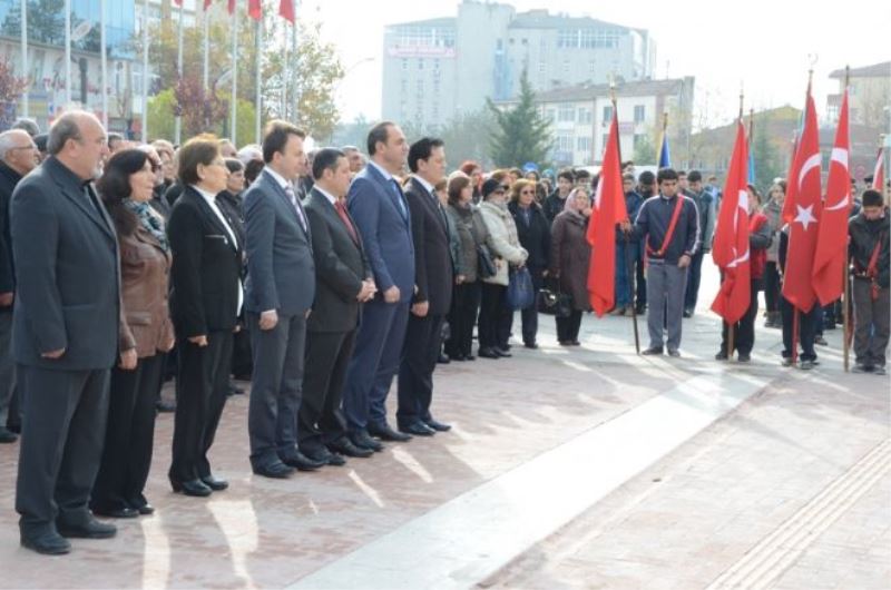 Misak-ı Milli Meydanında Atatürk Anıtına çelenk sunumu, Saygı Duruşu ve İstiklal Marşının okunması ile başlayan törenler Sunal Tülbentçi Öğretmen Evinde devam etti.