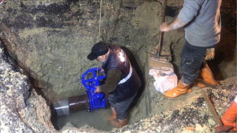 Belediyeden yapılan açıklamada, Yeni Mahalle ve kaymakamlık önünde bulunan, ana su hatlarını besleyen vanaların ekonomik ömürlerini doldurması nedeniyle gece vana değişim çalışması yapıldığı belirtildi.