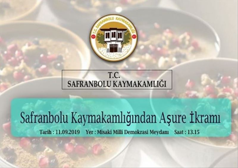Aşure Günü Münasebeti ile Safranbolu Kaymakamlığı olarak 11.09.2019 Çarşamba Günü saat:13.15´te Misak-ı Milli Demokrasi Meydanında vatandaşlarımıza aşure ikram edilecektir. Tüm vatandaşlarımız davetlidir.' dednildi.