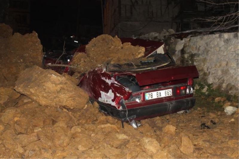 Cami Kebir Mahallesi Tabakhane Sokak`ta meydana gelen heyelanda bir ev ve hareket halindeki bir otomobil zarar gördü. Hurdaya dönen otomobil içindeki baba ve oğlu yaralı olarak kurtuldu.