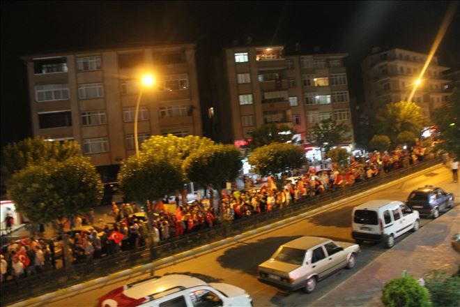 Dedeoğlu camii önünde başlayan yürüyüşe, Safranbolu Kaymakamı Murat Bulacak, Safranbolu Belediye Başkanı Necdet Aksoy, İl Genel Meclisi Ahmet Sözen, siyasi parti temsilcileri, sivil toplum kuruluşları ve yaklaşık 4 bin kişi katıldı. Türk bayraklarıyla Misak-ı Milli Meydanı´na yürüyen vatandaşlar, tekbirler getirerek , ‘Şehitler ölmez vatan bölünmez´, ‘Vatan sana canım feda´ sloganları attı. Safranbolu Müzekent Motosiklet Kulübü üyesi 50 motosikletli de yürüyüşe destek verdi.