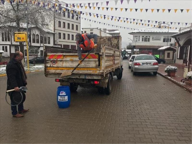 Safranbolu Kaymakamı ve Belediye Başkanı Dr. Fatih Ürkmezer, ana arterler, ara yollar ve köy yollarında karla mücadele konusunda geçtiğimiz günlerde toplantı yaptıklarını kaydederken; 'Bu çalışmalar İçişleri Bakanlığının genelgesi doğrultusunda yapılıyor. Genelde doğrultusunda belediye olarak uygulama başlattık. Halkın yoğun olarak kullandığı Sadri Artunç, Kaya Erdem ve Metin Sözen Caddesi boyunca, Aslanlar, Tarihi Çarşı bölgesinde vatandaşlarımızın, özellikle öğrencilerimizin yoğun olarak kullandıkları bölgelere tuz varilleri koyduk. Burada amacımız: Belediye olarak başta ana yollarda kar, don ve buzla mücadele kapsamında gerekli çalışmalarımızı yürütüyoruz. Ancak kaldırımlarda vatandaşlarımızın zorluklar yaşamaması için tuz varilleri uygulamasını hayata geçirdik.' diye konuştu.