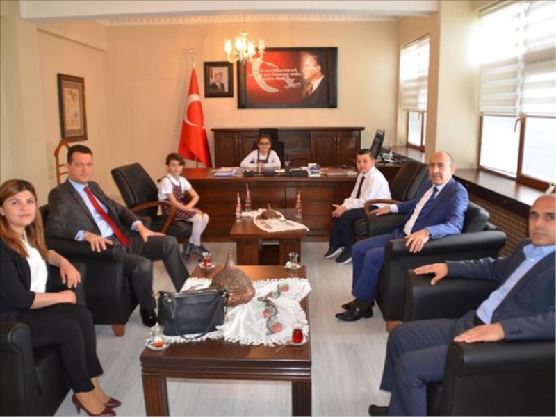 Bayram öncesi Safranbolu Kaymakamı ve Belediye Başkanı Dr. Fatih Ürkmezer´i ziyaret eden Zati Ağar İlköğretim Okulu 4. Sınıf öğrencileri Emir Efe Kapanşahin, Melek Rana Yılmaz ve Beren Demirci sırasıyla makam koltuğuna oturdular.